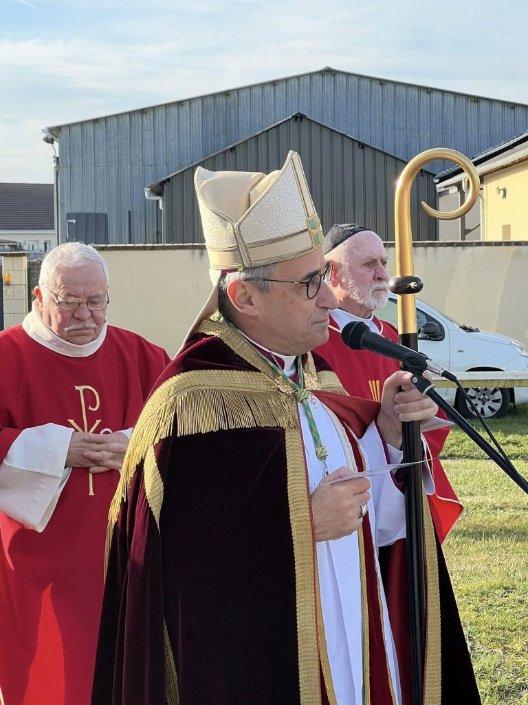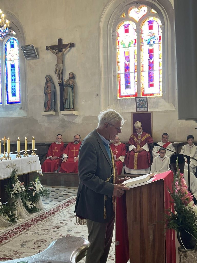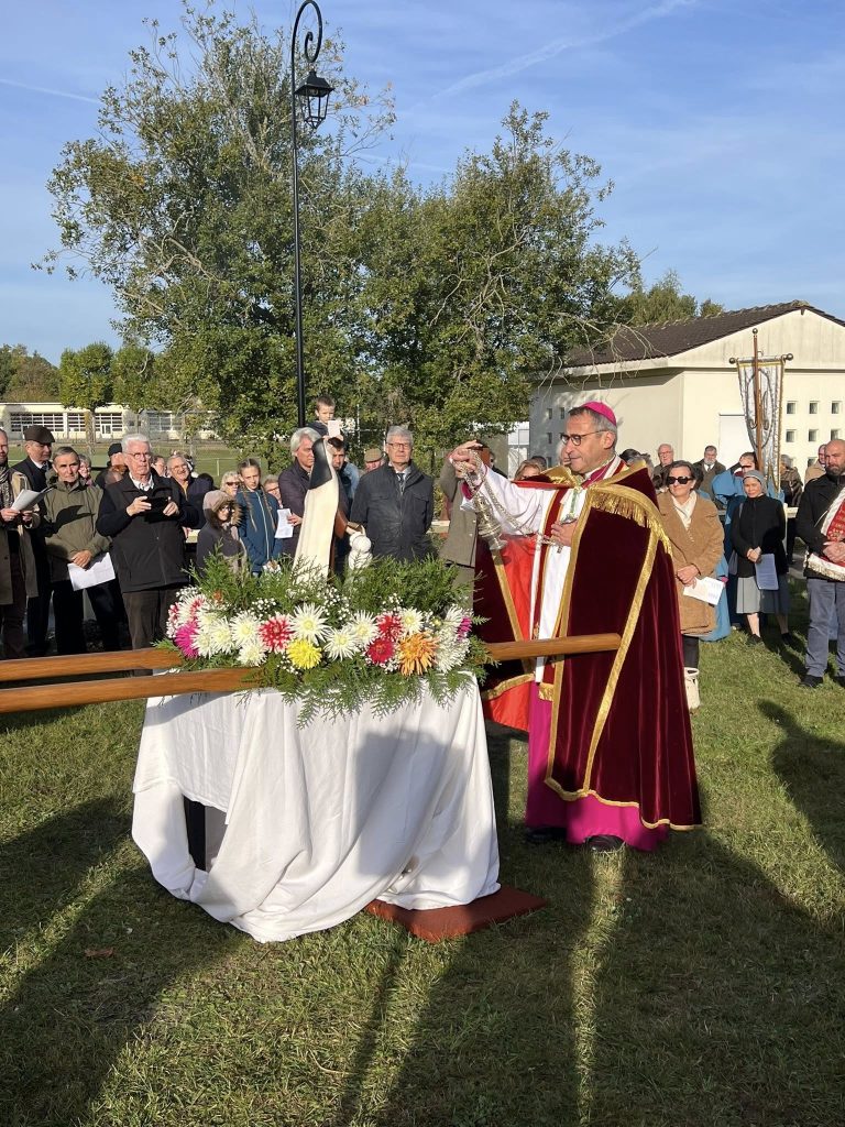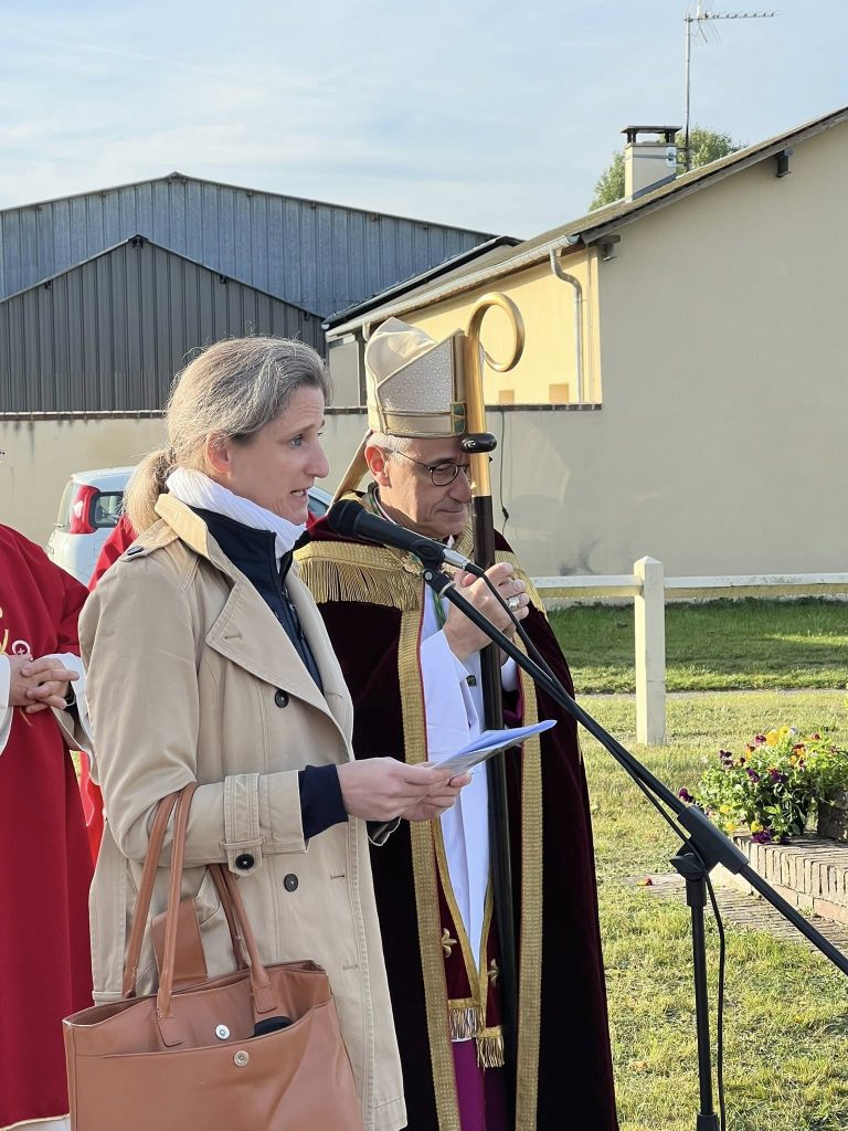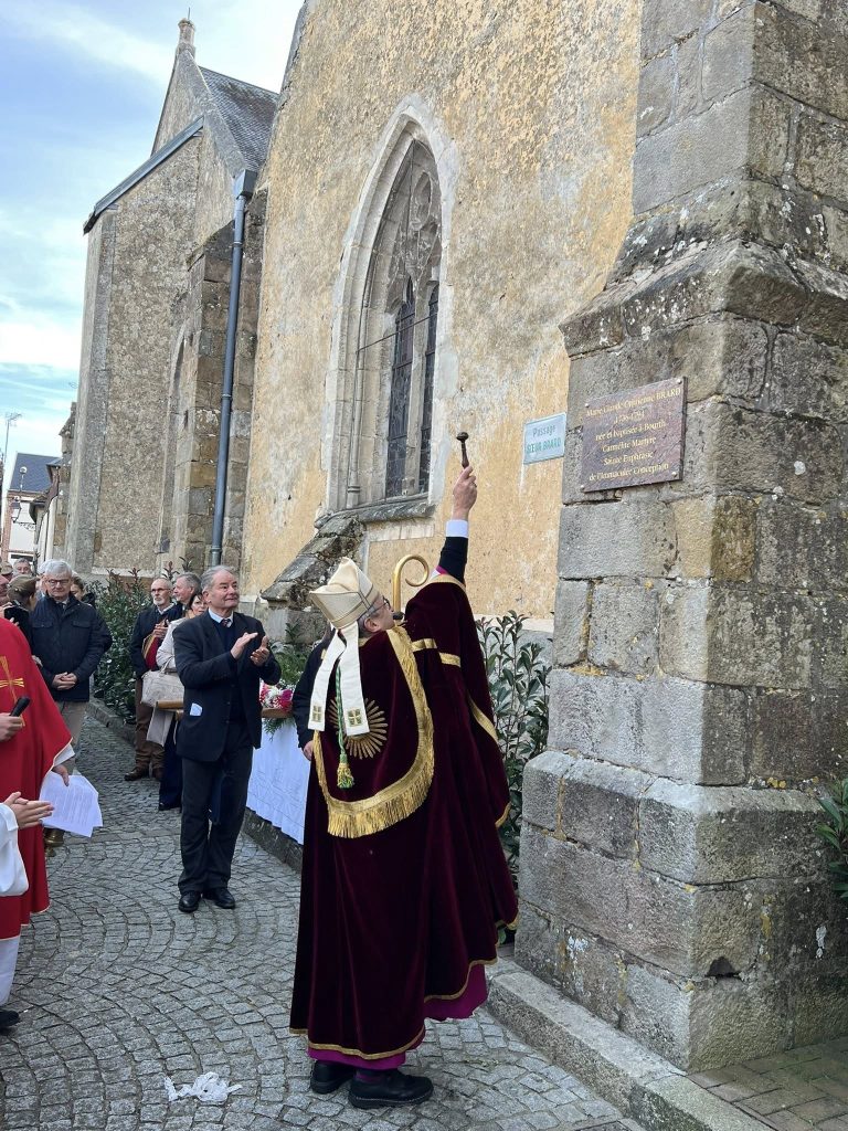 Devant l’église, une plaque commémorative a été bénie en présence de Mgr Olivier de Cagny et de M. le Maire de Bourth.