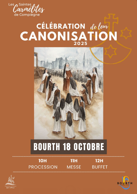 Messe d’action de Grâce pour la canonisation de Sœur Euphrasie de l’Immaculée Conception, Carmélite de Compiègne. Au programme : Procession, inauguration de la plaque, bénédiction de la statue, messe et buffet..